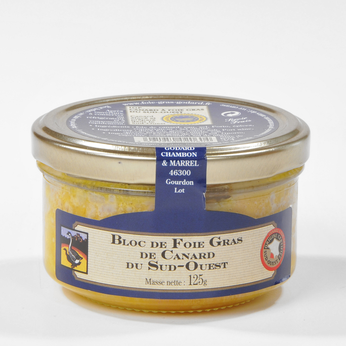 Bloc de foie gras výrobek je složen z jemně rozemletých, okořeněných tučných jater.