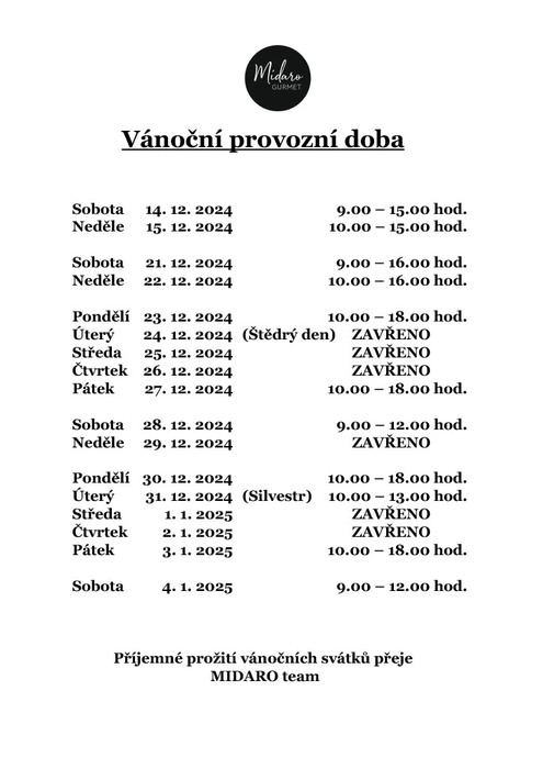 VÁNOČNÍ PROVOZNÍ DOBA 2024