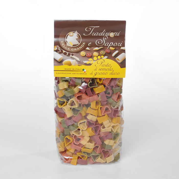 Složení: mouka z tvrdozrnné pšenice, rajčata, špenát, červená řepa a kurkuma v prášku 2%. Může obsahovat stopy vajec, ryb, měkkýšů a ořechů.