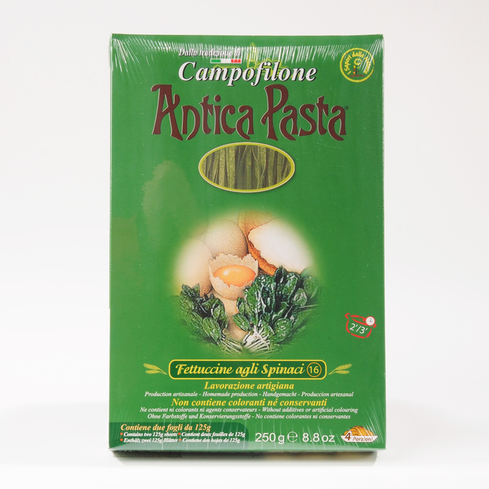 ANTICA PASTA je značka ručně vyráběných vaječných těstovin z Campofilone. Protlačují se přes bronzové matrice, suší se při nízkých teplotách.