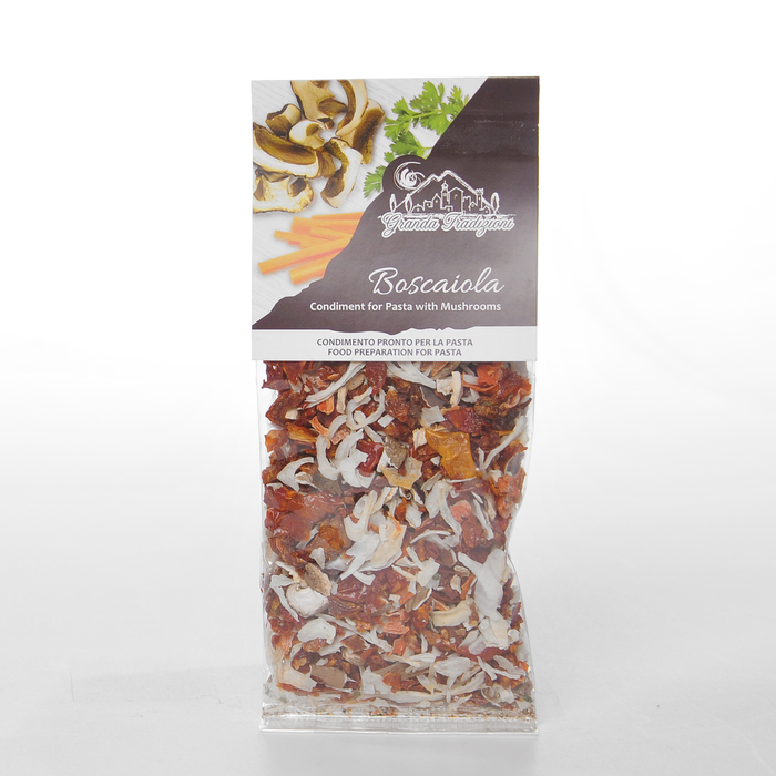 Na pánev s nepřilnavým povrchem nalijte olivový olej extravergine, přidejte směs dle chuti a minutu restujte. Pak přilijte hrnek horké vody (nejlépe z vařených těstoviny) a přidejte uvařené těstoviny. Promíchejte a můžete servírovat. Dobrou chuť.