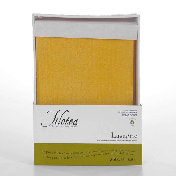 Vaječné pláty pro přípravu tradičního italského pokrmu "lasagne". Můžete je vyzkoušet s červenou nebo bílou omáčkou, s masem, rybou nebo zeleninou. Pláty se dají použít přímo nebo je můžete předem uvařit ve vodě. Doba varu 2min.