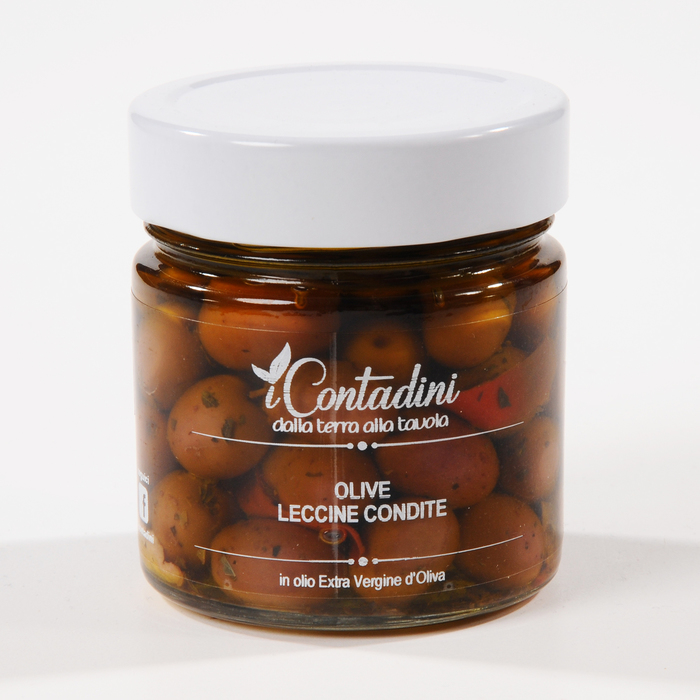 Leccine je druh oliv typický pro Salento. Sklízí se na přelomu října a listopadu. Po přísné selekci se olivy nakládají do slané vody. Zde zůstávají po dobu cca 6měsíců. Podle tradičního receptu se pak ochutí a ručně vkládají do sklenic.