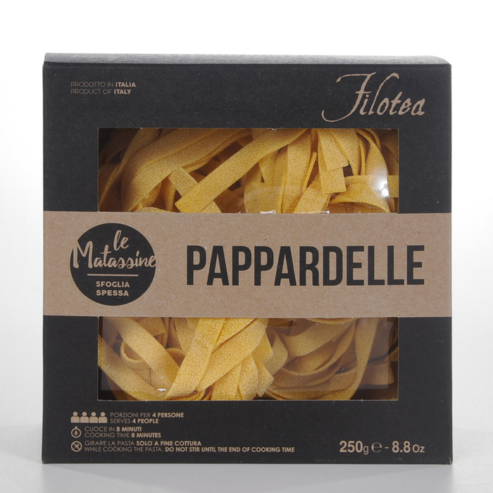 Vaječné těstoviny Pappardelle balené do klubíček.