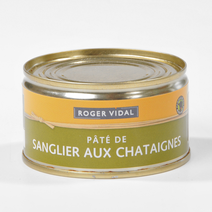 Úvod > Naše nabídka > Teriny, foie grass, šneci > Paštika kančí s kaštany 125g
