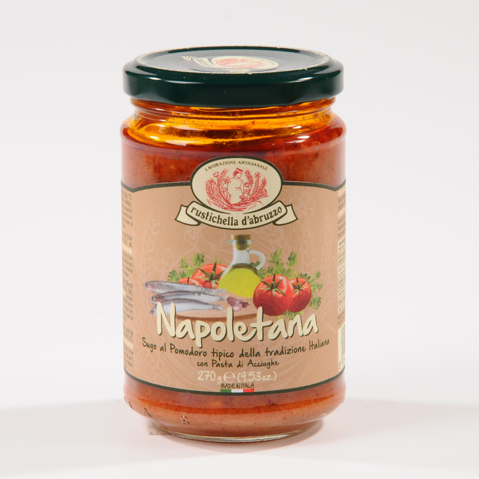 Omáčka obsahuje rajčata, olivový olej extra vergine, ančovičky, česnek, sůl, petržel.
