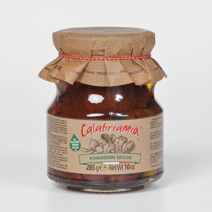 Sušená rajčata naložená ve slunečnicovém oleji s přídáním olivového oleje extra vergine. Jsou příjemně ochucena.