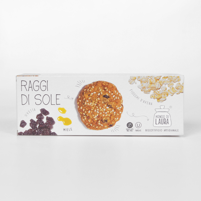 RAGGI DI SOLE jsou italské sušenky s ovesnými vločkami, sezamem, medem a rozinkami. Vyzkoušejte je jako rychlou a zdravou snídani.